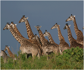 Located between the peaks of Mt. Kilimanjaro and Mt. Meru, Arusha National Park